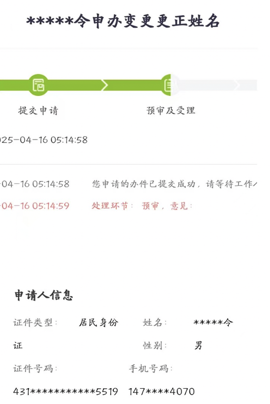 4月25日,湖南郴州人“朱雀玄武敕令”小朱告诉潇湘晨报记者,他01年,出生时父母为其取名朱云飞,2024年5月改名“朱雀玄武”,2025年1月改成现在的名字,2025年4月已经申请改名“周天紫薇大帝”。